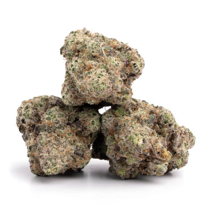 This strain has a decidedly fruity and floral-like aroma. On the nose, users will pick up notes of rose, tulips, and wildflowers blended with sweet hints of juicy blueberries. As you break apart the nugs, you’ll also be able to pick up on aromas of strong earth and the lightest whiff of pungent skunk.