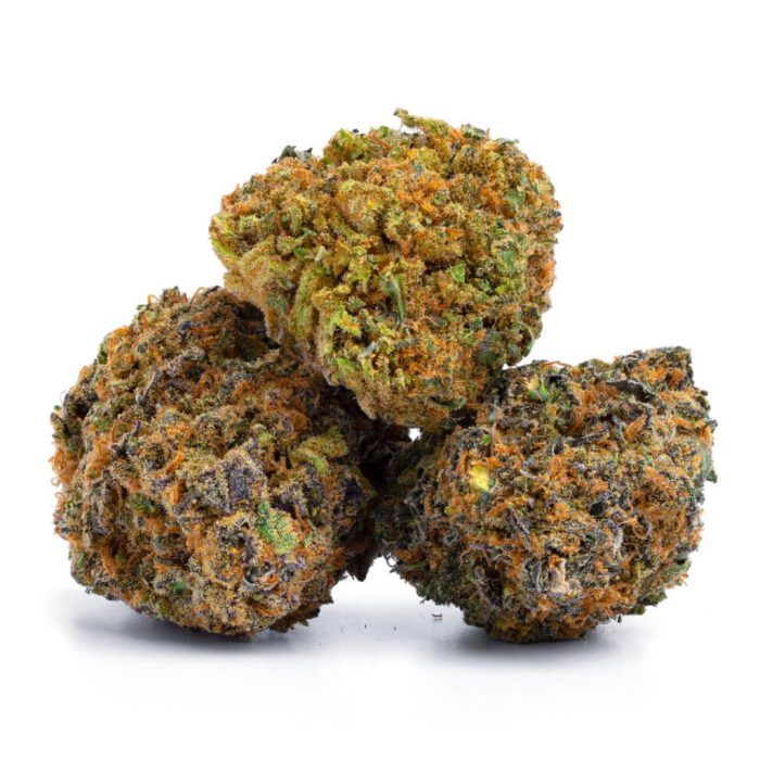 Blue Hawaiian nugs are typically light to neon green, leafy and dense. Keeping in tune with the name, Blue Hawaiian is fruity and tropical by nature. The smell resembles a fresh-pressed Pina Colada with its sweet, pineapple bouquet. Breaking open the nugs reveals a musky odour.