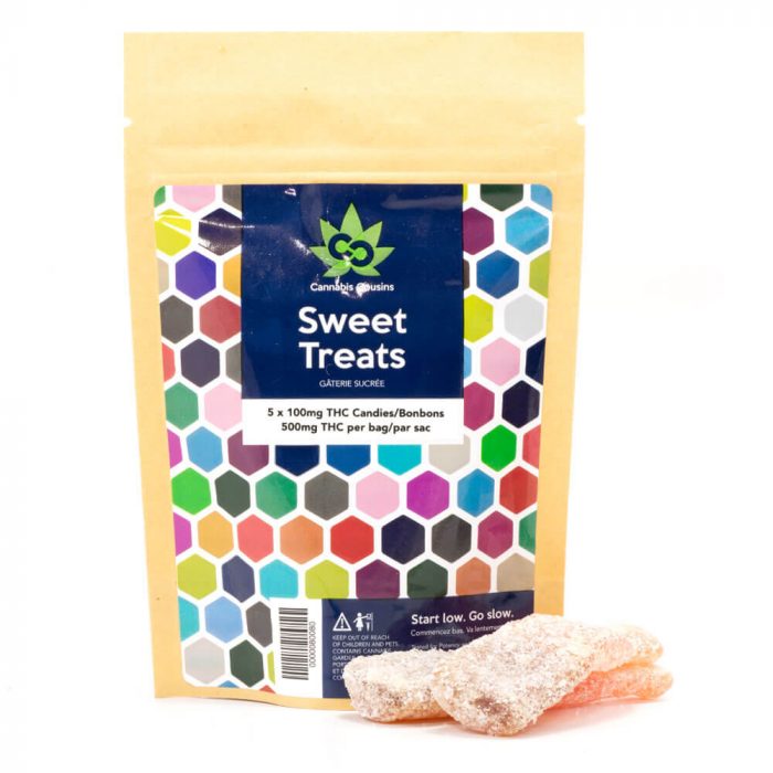 500mg THC Jumbo Cherry Cola’s by Cannabis Cousins are coated with sugar and THC distillate. Each cherry cola is infused with 100mg of THC distillate and taste absolutely delicious which makes these Sweet Treats very scary. Cannabis cousins only uses high quality THC distillate in all of their products, while ensuring properly measured doses. These cherry colas are the perfect sweet treat for those looking to indulge with friends or discreetly in public. These edibles are made and tested in a Health Canada approved facilities.